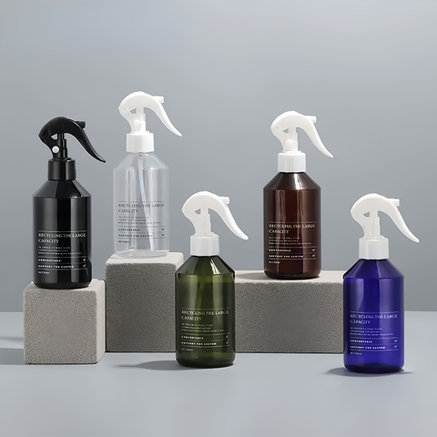 Cute 200ml 280ml 300ml 500ml Refillable Fine Mist Spray Bottle Plastic Cosmetic Empty Frosted Amber White with Trigger Lid